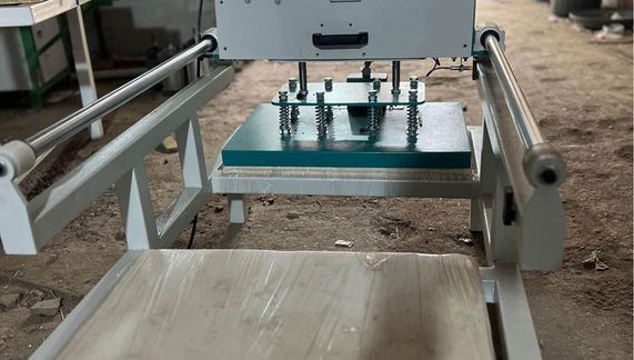 Dual bed tray system for fast production. One Bed is loaded and the other is pressed